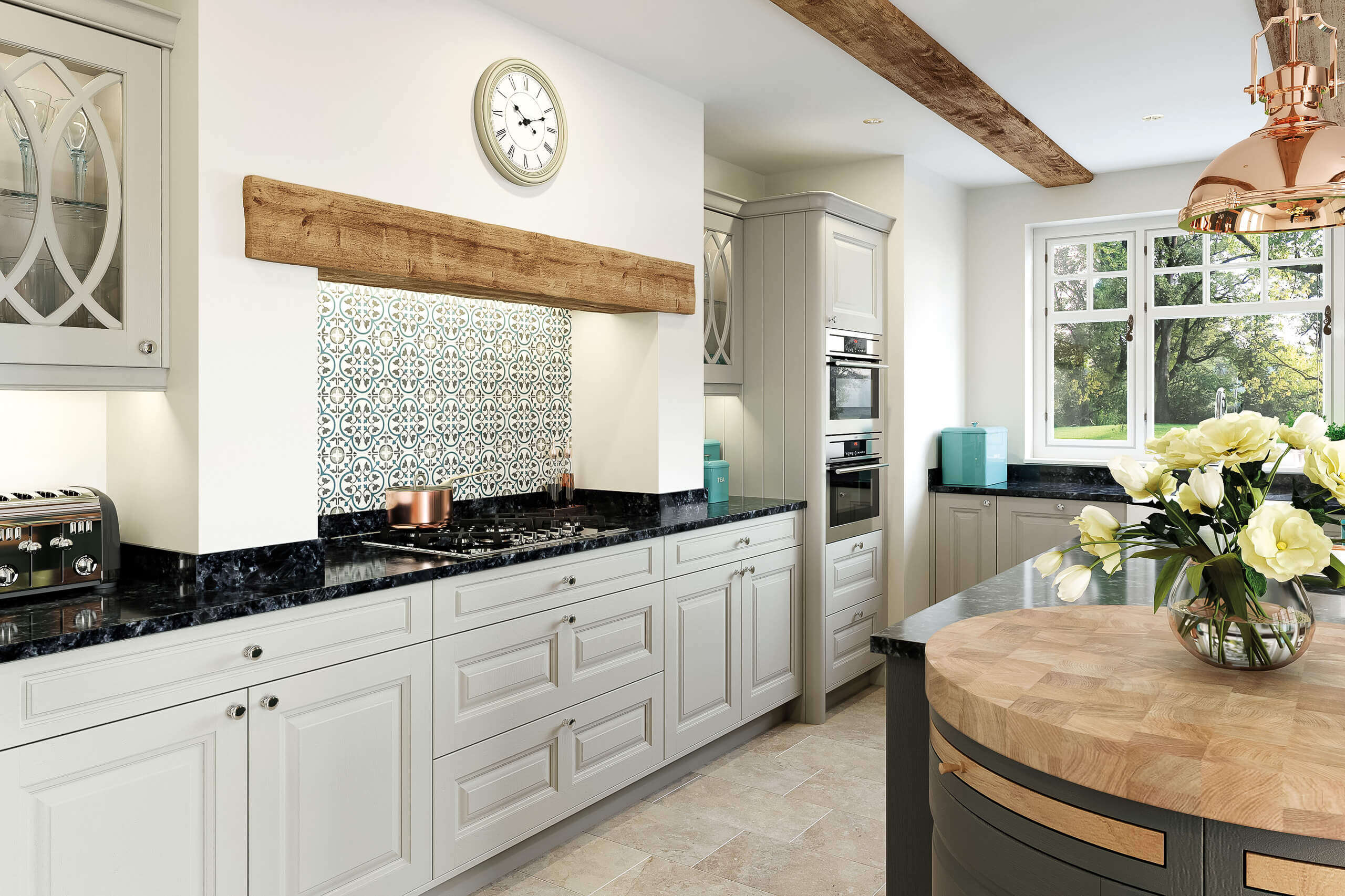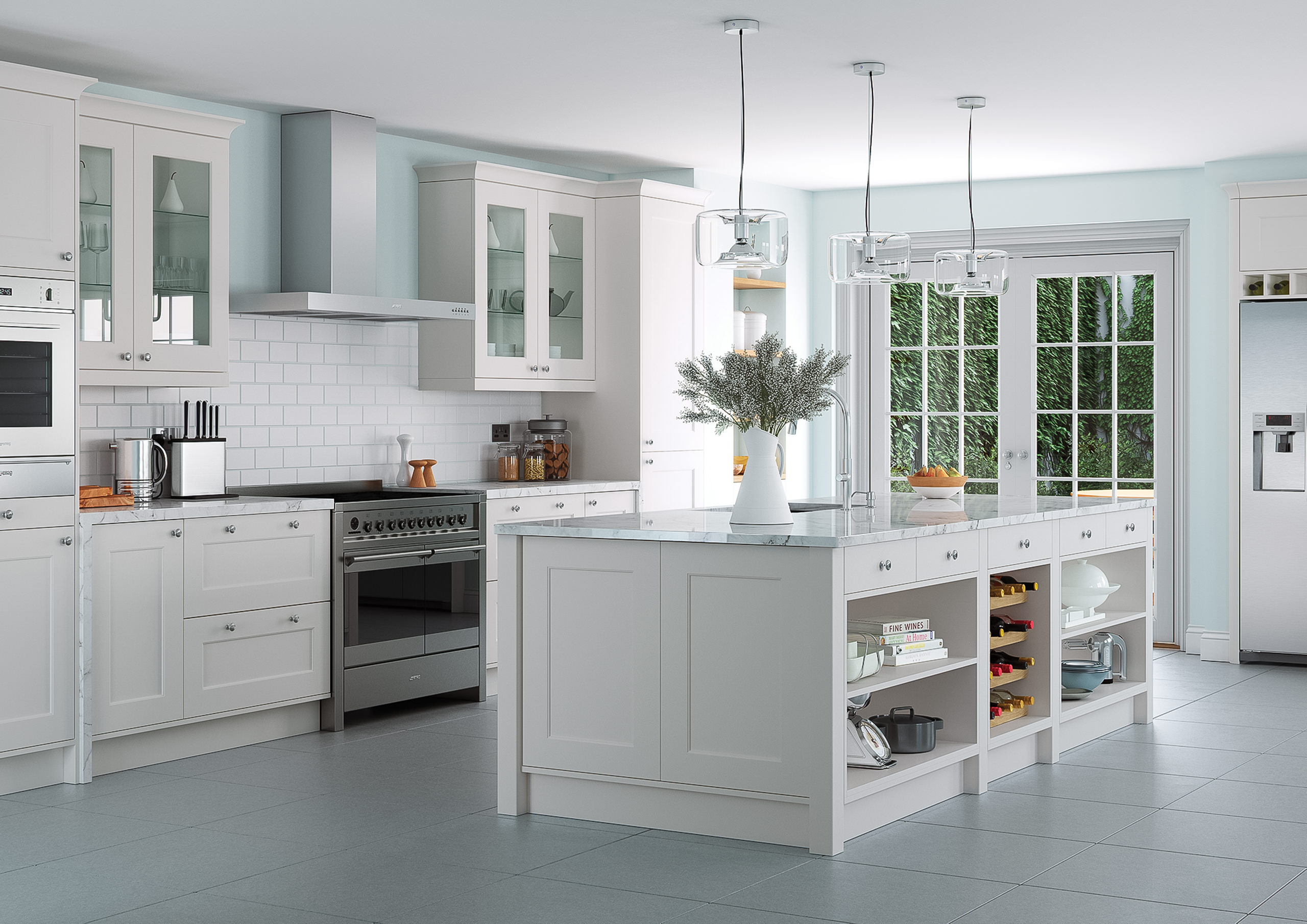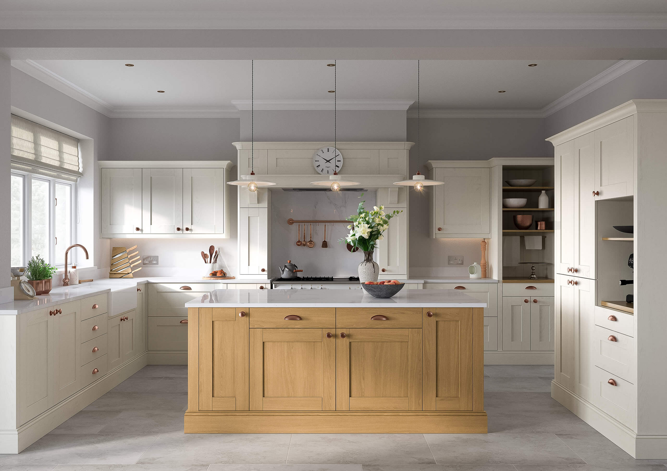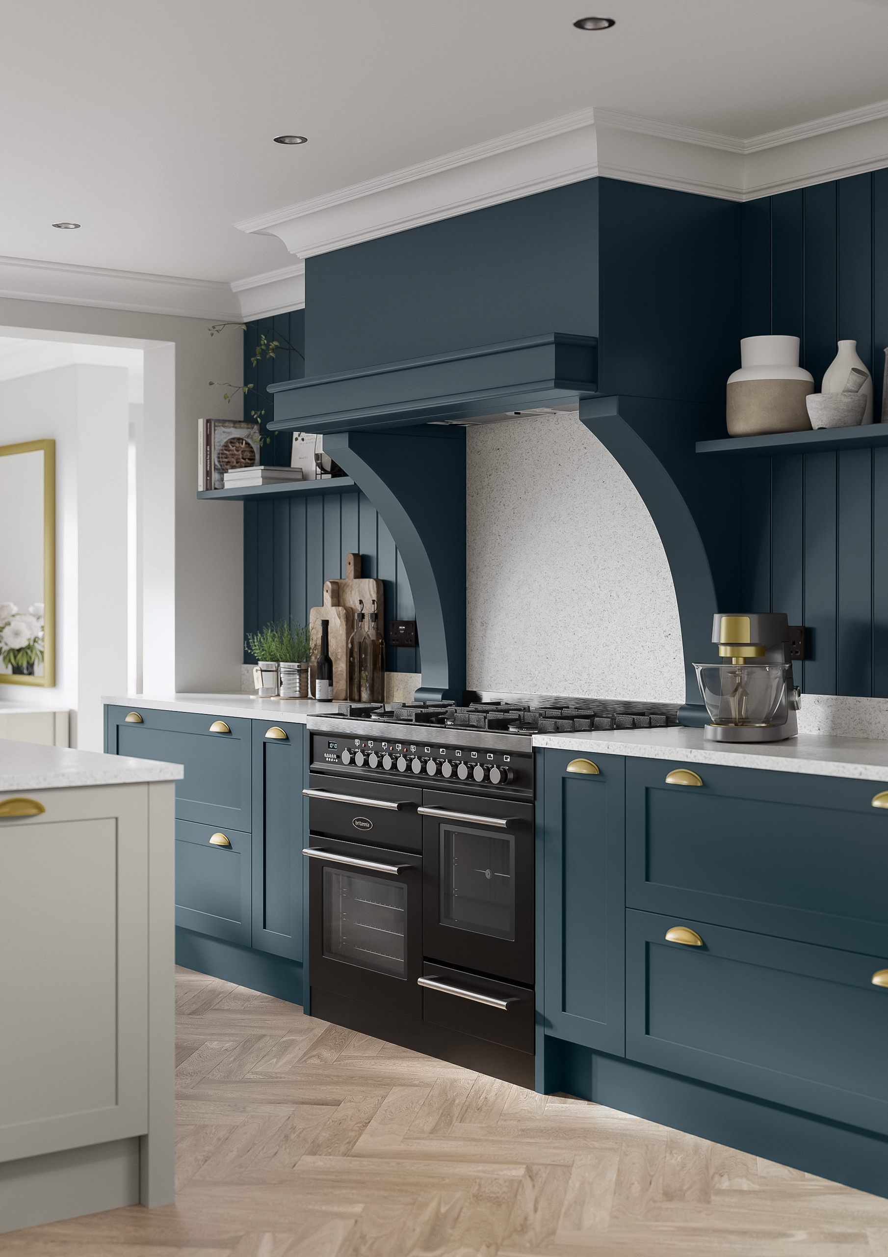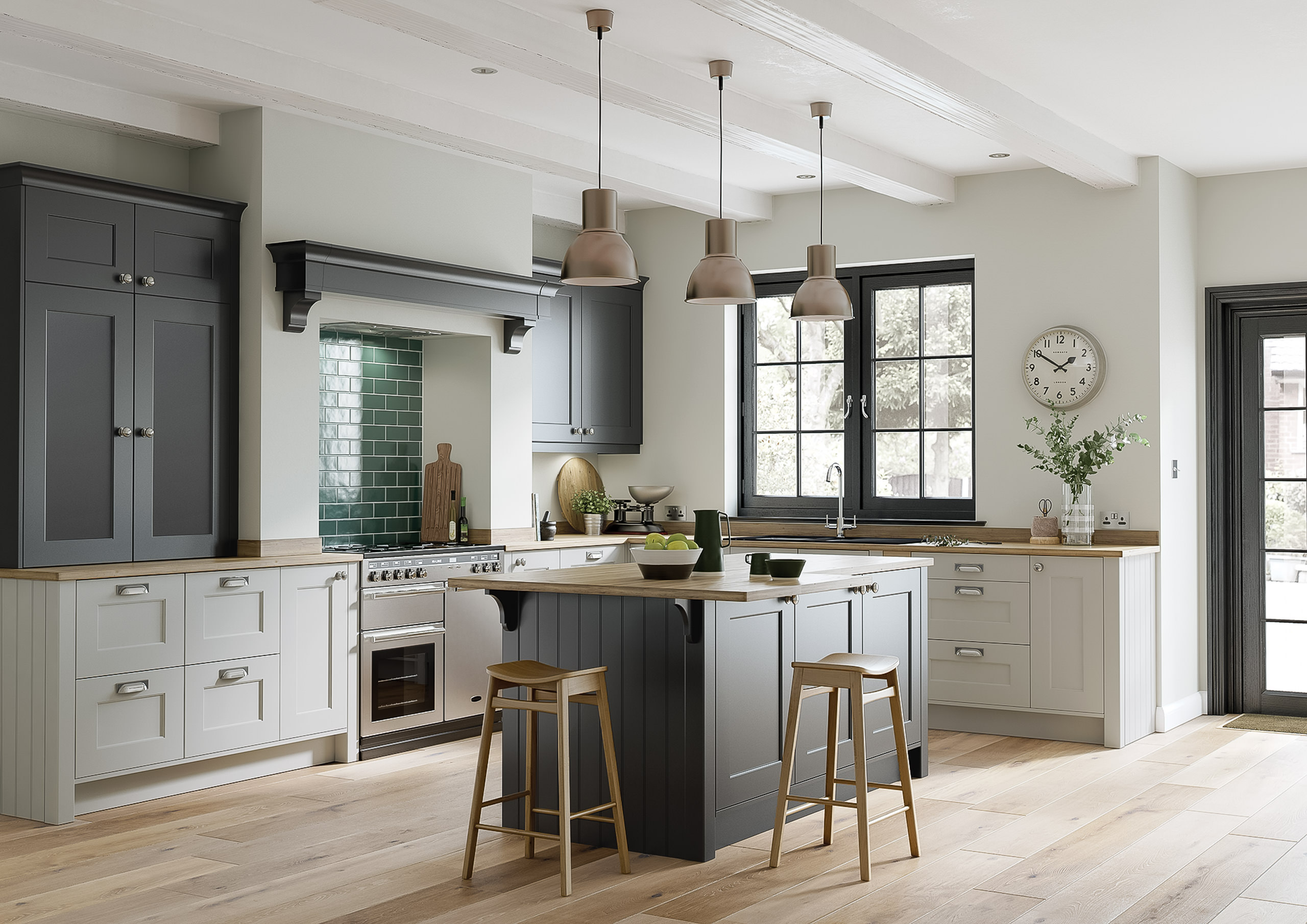 A timeless shaker kitchen in slate grey, blending traditional charm with modern touches and a welcoming, sophisticated ambiance.